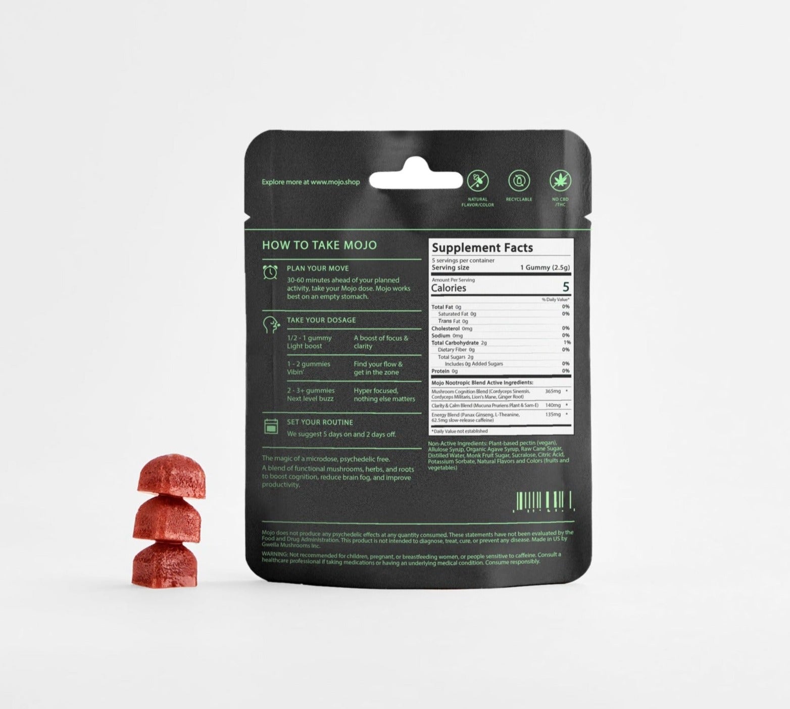 Mojo has been a transformative addition to my routine for focus and productivity! I feel sharper, tackle tasks more efficiently, and no longer rely on multiple cups of coffee to get through the day. The steady, crash-free energy is perfect, and they taste great too! Highly recommend for anyone looking to stay on top of their game."
